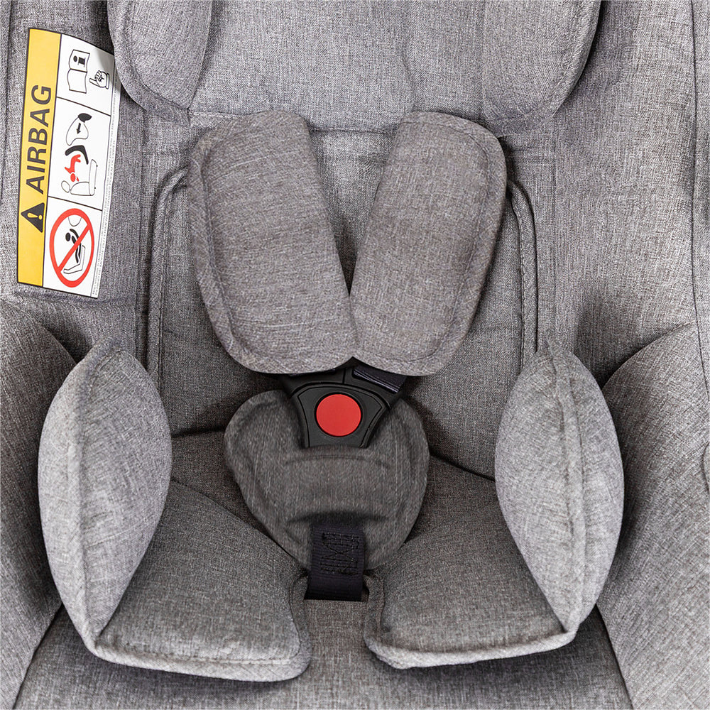 Aprovado pelo INMETRO conforme a norma ABNT NBR 14.400 para crianças do nascimento aos 13kg (Grupo 0+) para instalação nos cintos de segurança de 3 pontos dos veículos. Aprovado para uso em aviões (consulte cia aérea).