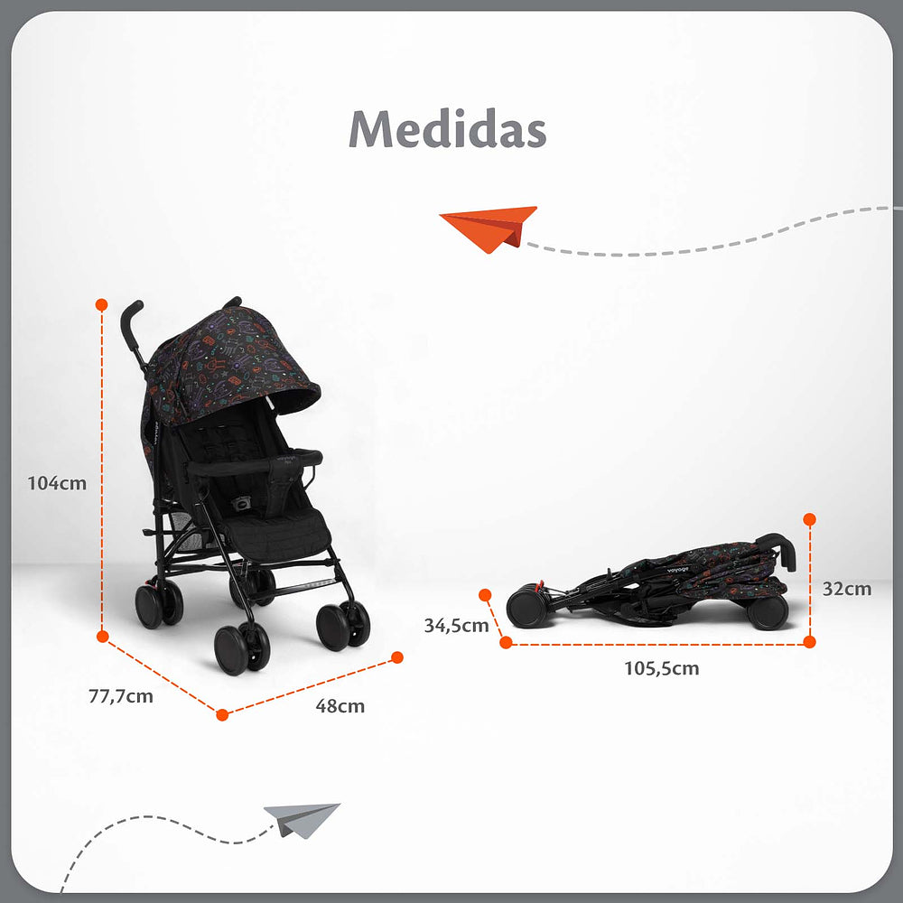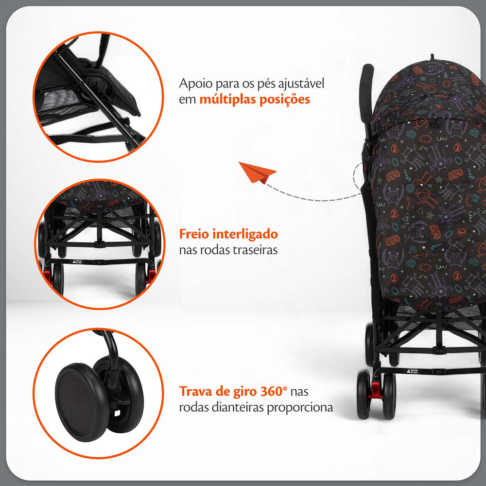 | Capota | Extensível, com visor, aba de sol e bolso porta objetos |
