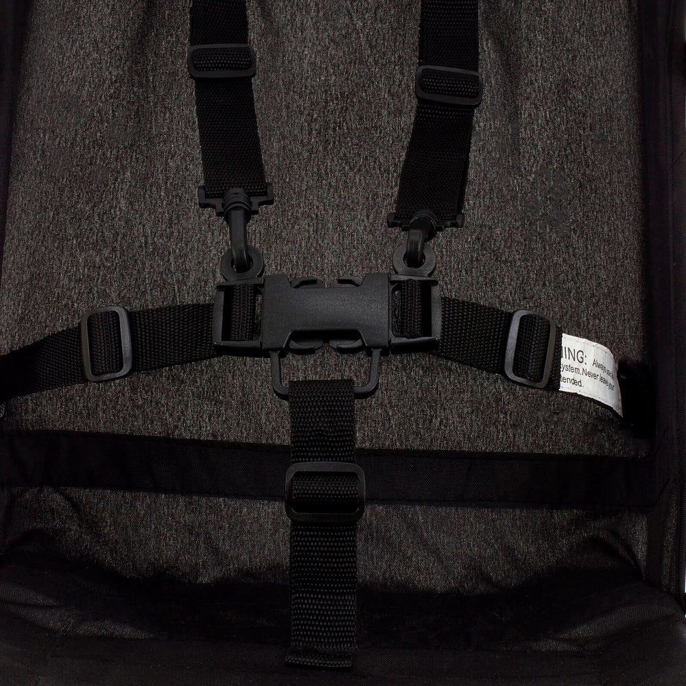 Possui manoplas ergonômicas com acabamento que evita que escorregue, facilitando o dirigir, capota versátil, retrátil e removível, apoio para os pés, freios interligados nas rodas traseiras, giro 360°nas rodas dianteiras e cinto de segurança de 5 pontos com ajuste de altura e com trava de fechamento.